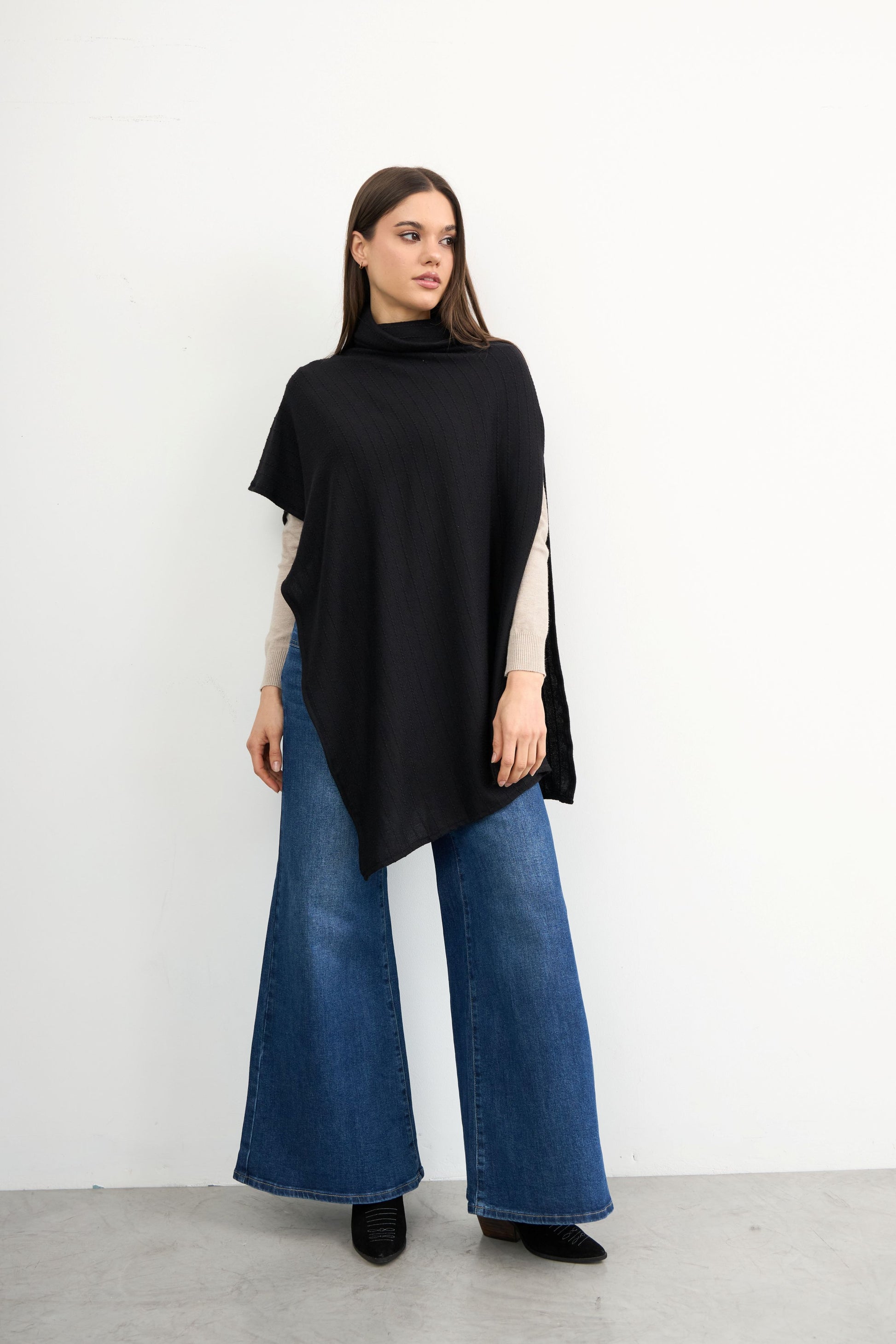 Nuestra Capa Olivia con diseño asimétrico ofrece comodidad y versatilidad, ideal para combinar con jeans o leggings. Hecha con un tejido suave y texturizado, es la prenda perfecta para añadir un toque de estilo a tus looks de otoño/invierno.