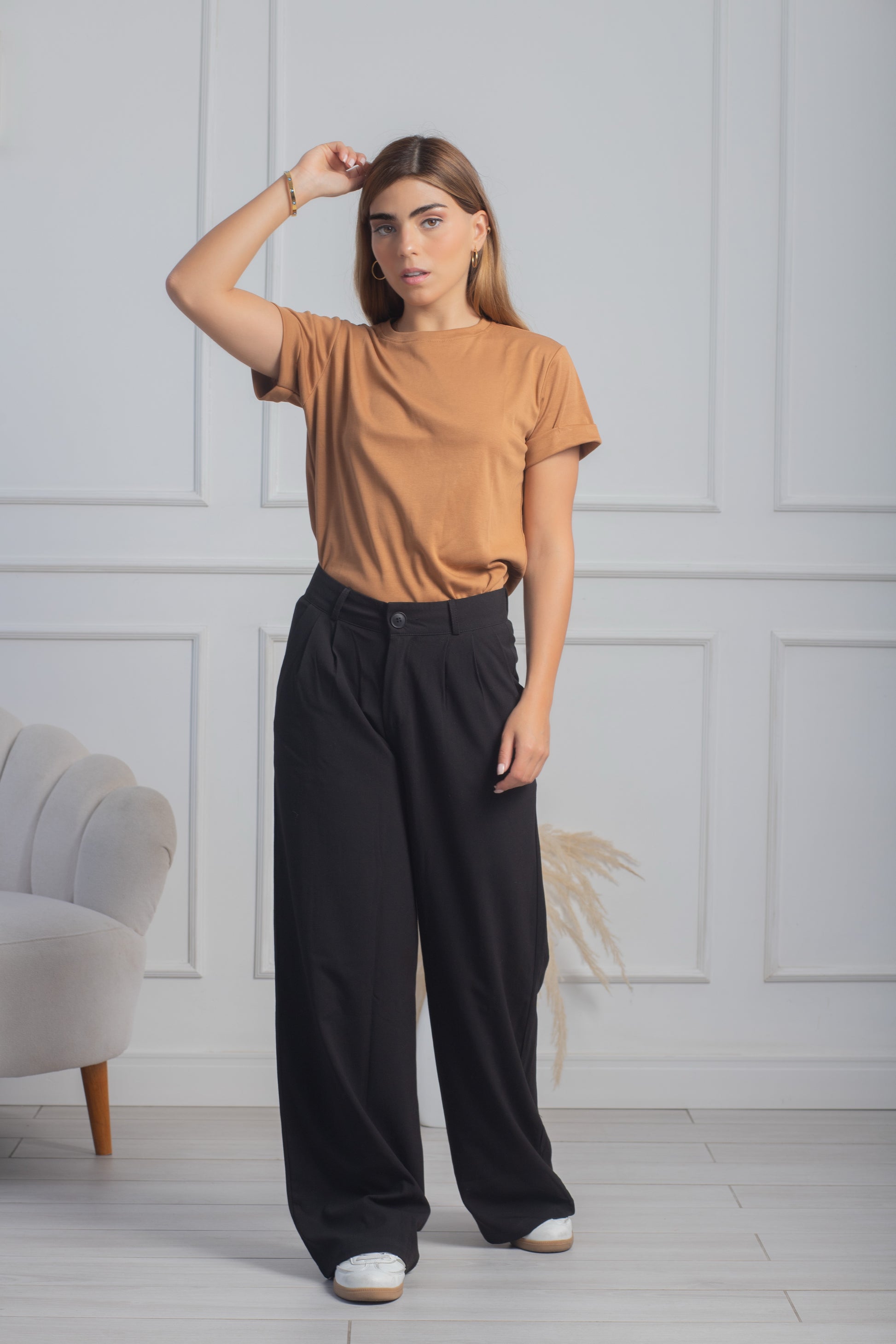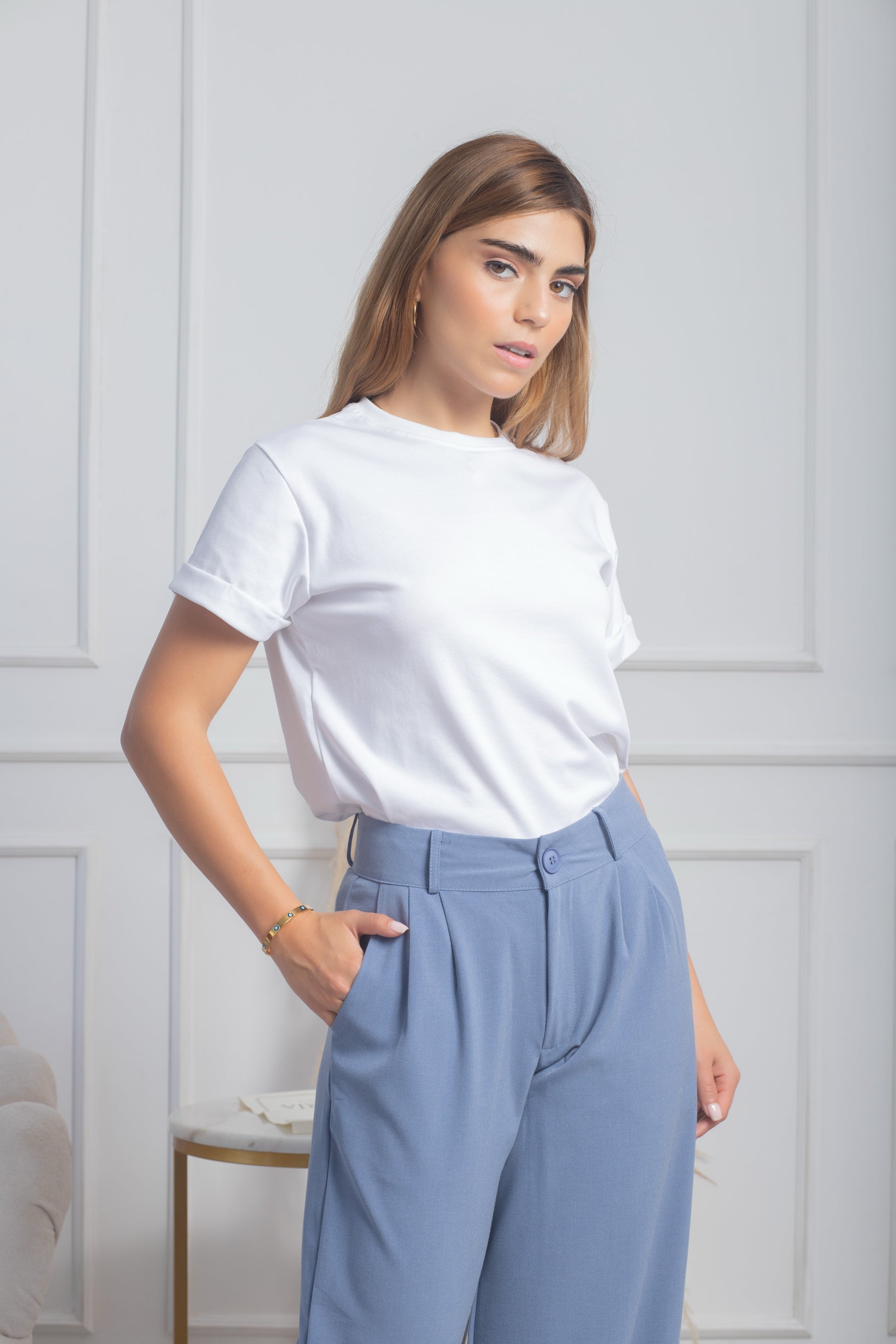 Polo básico cuello redondo de manga corta con delicado doblez en las mangas